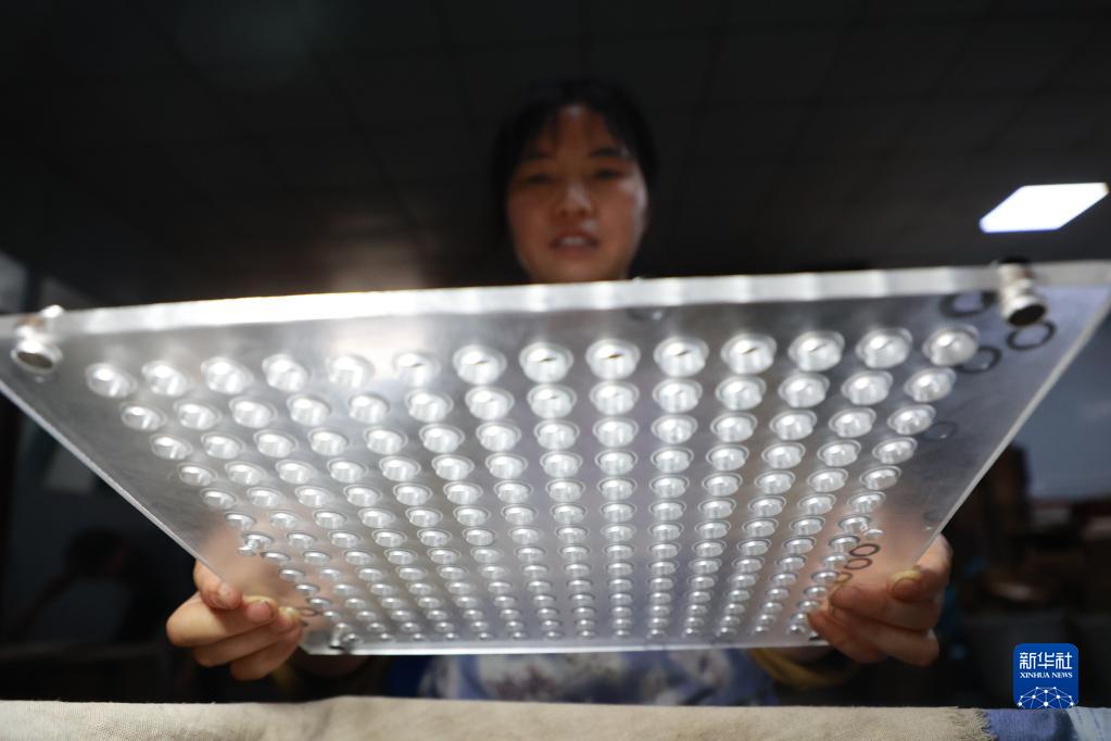 4月10日,搬遷群眾在獨山縣望城社區安置點(diǎn)附近的軸承產(chǎn)業(yè)園區內檢查成品軸承質(zhì)量。