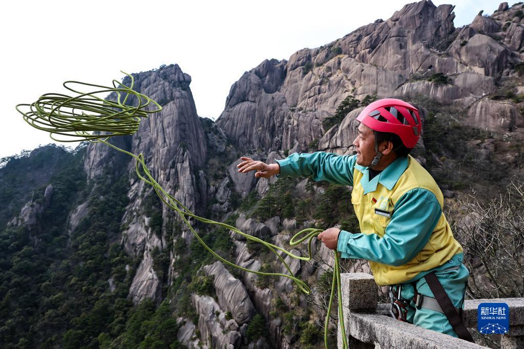 在安徽黃山風(fēng)景區,有這樣一群特殊的環(huán)衛工,他們常年攀爬在懸崖峭壁間清理垃圾。玉屏環(huán)衛所的李培生是他們中的一員,20多年來(lái),李培生累計放繩長(cháng)度達1800公里,除了巡查并清理垃圾,還經(jīng)常幫助游客撿拾掉下懸崖的物品,2012年被評為“中國好人”。黃山風(fēng)景區一共有18名像李培生這樣的放繩工,他們用辛勤的汗水守護著(zhù)黃山的美麗。