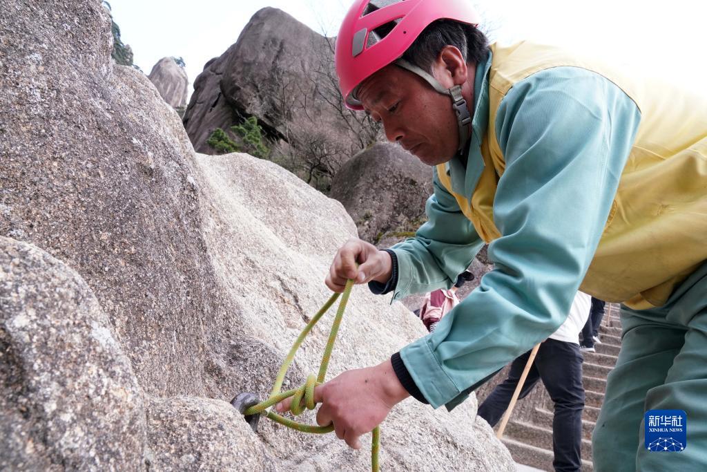 在安徽黃山風(fēng)景區,有這樣一群特殊的環(huán)衛工,他們常年攀爬在懸崖峭壁間清理垃圾。玉屏環(huán)衛所的李培生是他們中的一員,20多年來(lái),李培生累計放繩長(cháng)度達1800公里,除了巡查并清理垃圾,還經(jīng)常幫助游客撿拾掉下懸崖的物品,2012年被評為“中國好人”。黃山風(fēng)景區一共有18名像李培生這樣的放繩工,他們用辛勤的汗水守護著(zhù)黃山的美麗。