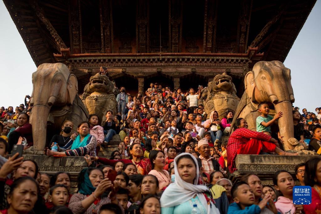 4月10日,人們聚集在尼泊爾中部加德滿(mǎn)都谷地的巴克塔普爾觀(guān)看傳統的新年慶典。