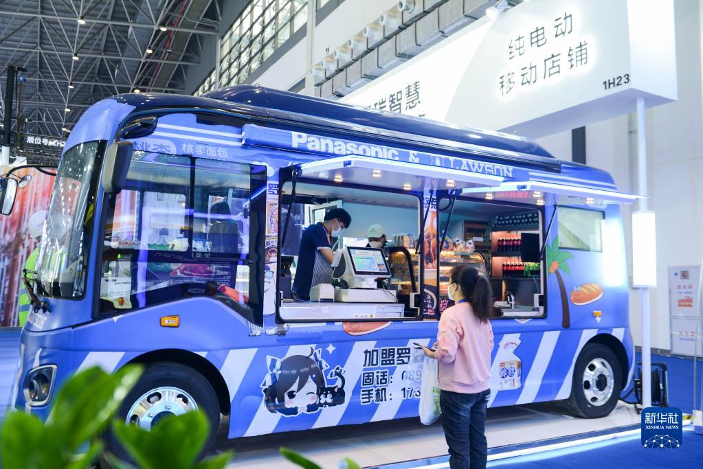 這是4月11日拍攝的消博會(huì )上展出的純電動(dòng)移動(dòng)便利店。