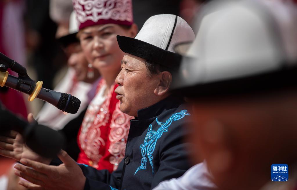 4月10日,在別迭里村,阿不都別克在演唱《瑪納斯》。