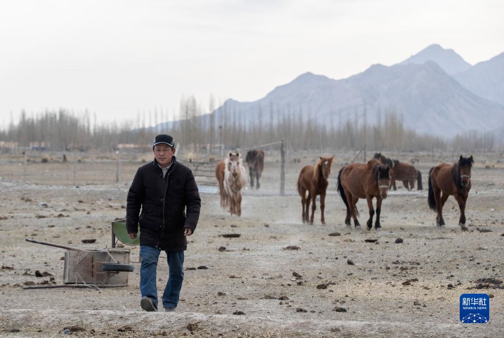 4月10日清晨,在阿合奇村,阿不都別克把馬放出來(lái)喝水。
