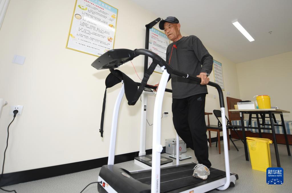 老年人在河北雄安新區容西第一養老驛站進(jìn)行鍛煉(4月10日攝)。