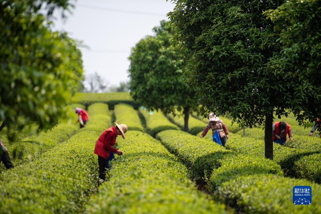 4月11日,在長(cháng)沙望城烏山貢茶基地,茶農采摘春茶。
