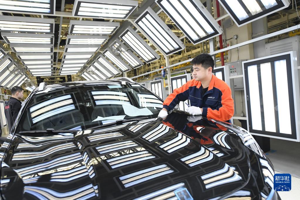 4月11日,技術(shù)人員在領(lǐng)克汽車(chē)寧波余姚工廠(chǎng)總裝車(chē)間工作。