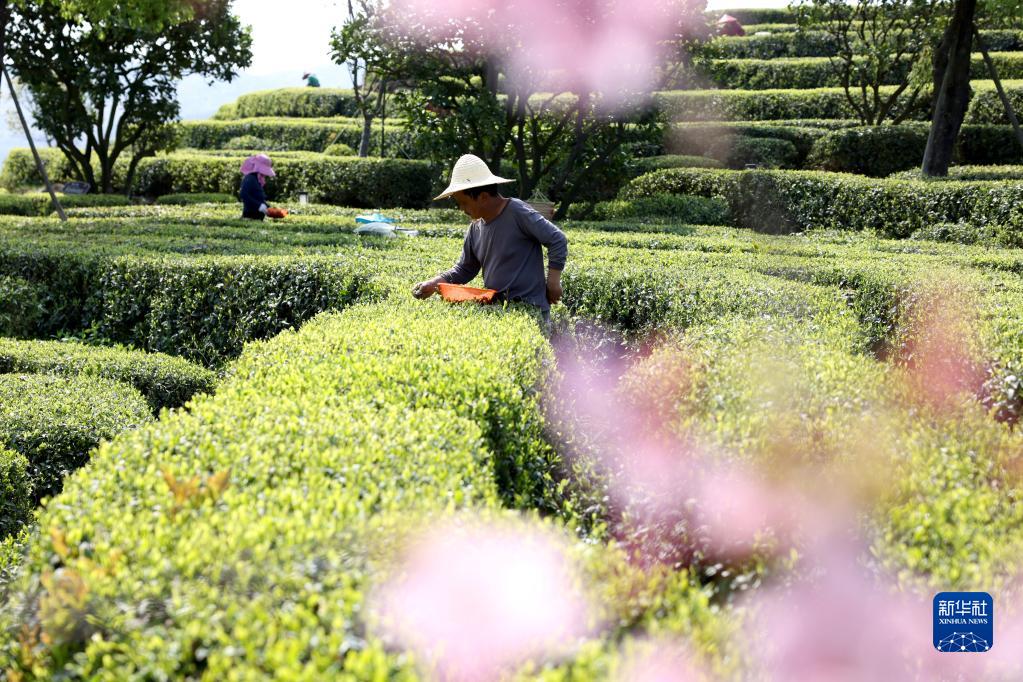 4月11日,村民在福建福鼎市佳陽(yáng)畬族鄉茶園采茶。