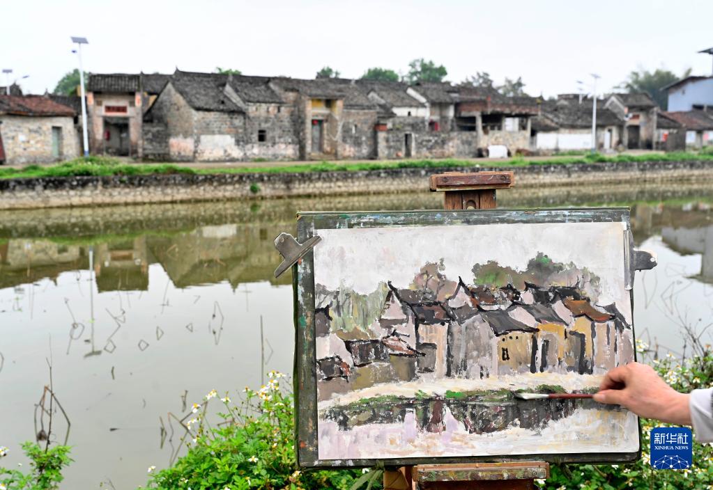 4月10日,繪畫(huà)愛(ài)好者在柳城縣古砦仫佬族鄉大戶(hù)村灘頭屯寫(xiě)生。