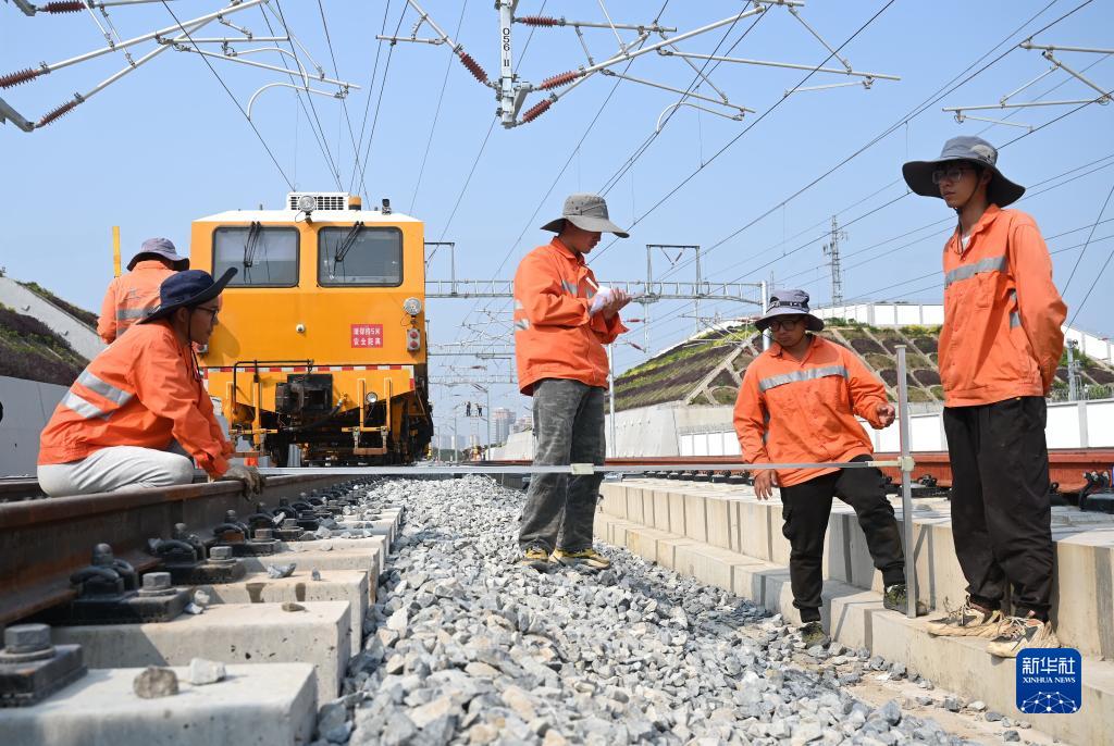 4月11日,中國鐵路南昌局集團有限公司永安工務(wù)段工作人員進(jìn)行精調作業(yè)。