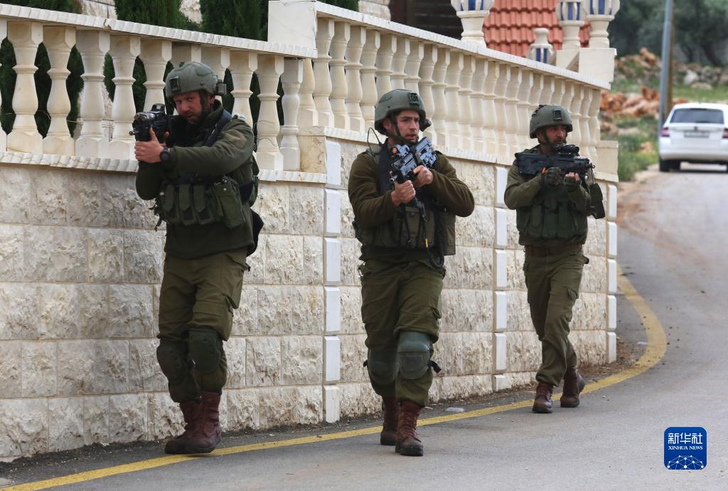 這是4月11日在納布盧斯交火現場(chǎng)附近拍攝的以色列士兵。