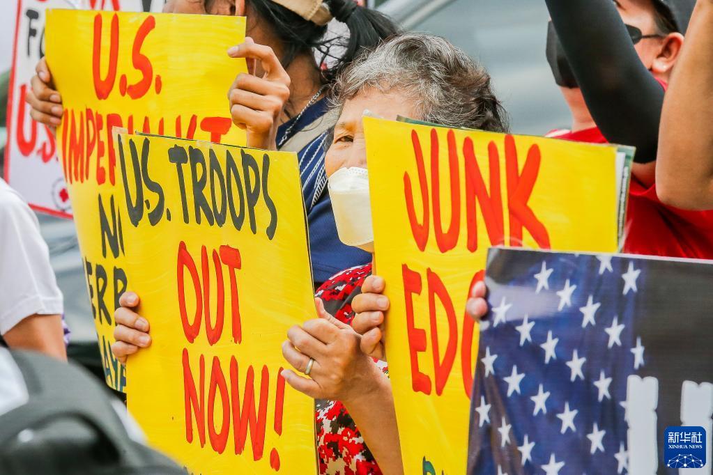 4月11日,在菲律賓首都大馬尼拉地區奎松城,民眾參加集會(huì )活動(dòng),抗議菲律賓和美國軍方舉行聯(lián)合軍事演習。