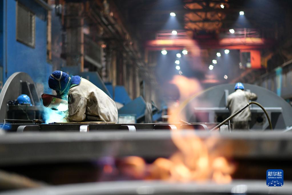 4月11日,工人在哈電集團哈爾濱電機廠(chǎng)有限責任公司車(chē)間內生產(chǎn)作業(yè)。