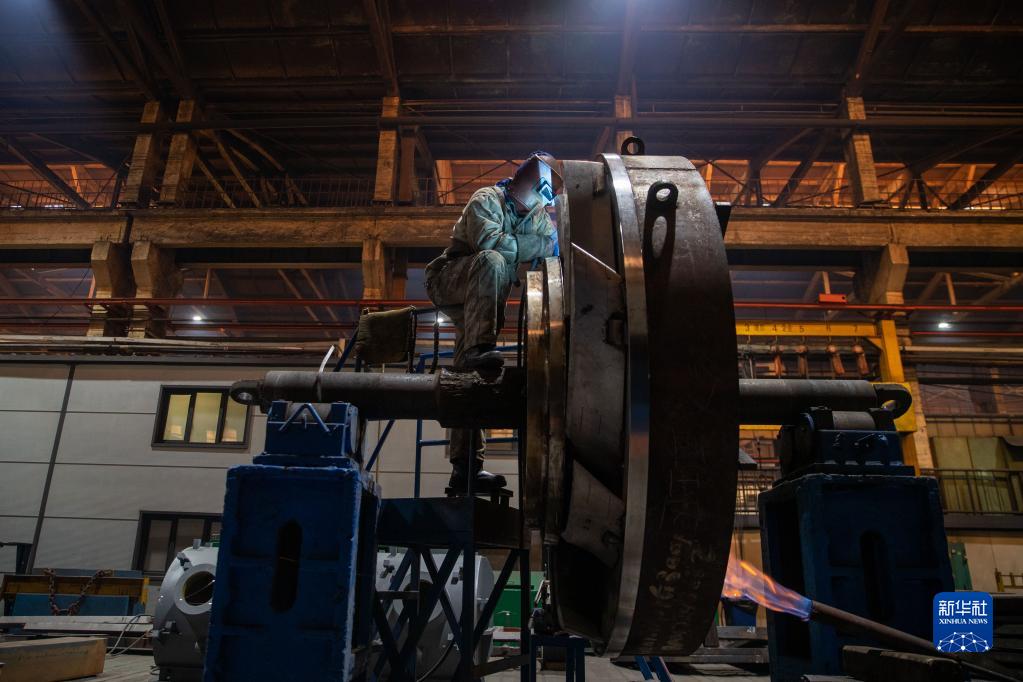 4月11日,工人在哈電集團哈爾濱電機廠(chǎng)有限責任公司生產(chǎn)車(chē)間內進(jìn)行作業(yè)。