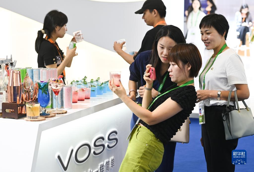 4月11日,觀(guān)眾在消博會(huì )上用手機拍攝飲品。