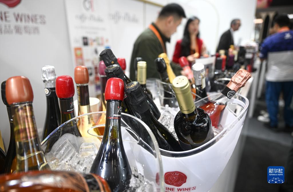 這是消博會(huì )意大利企業(yè)館內的葡萄酒(4月11日攝)。