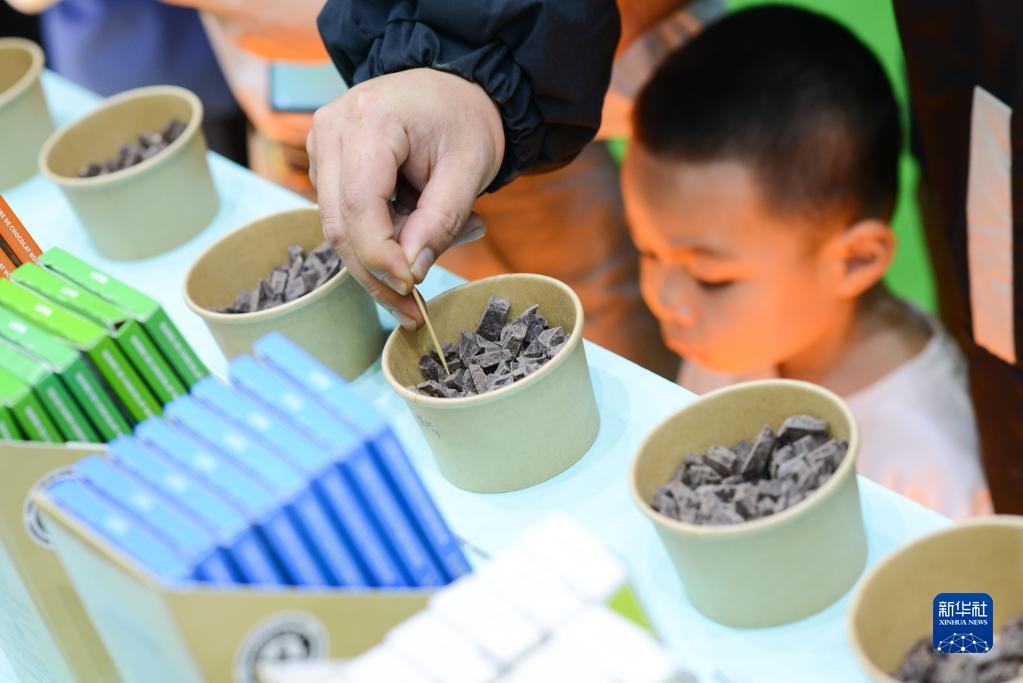 4月12日,參觀(guān)者在消博會(huì )上品嘗加拿大品牌巧克力。