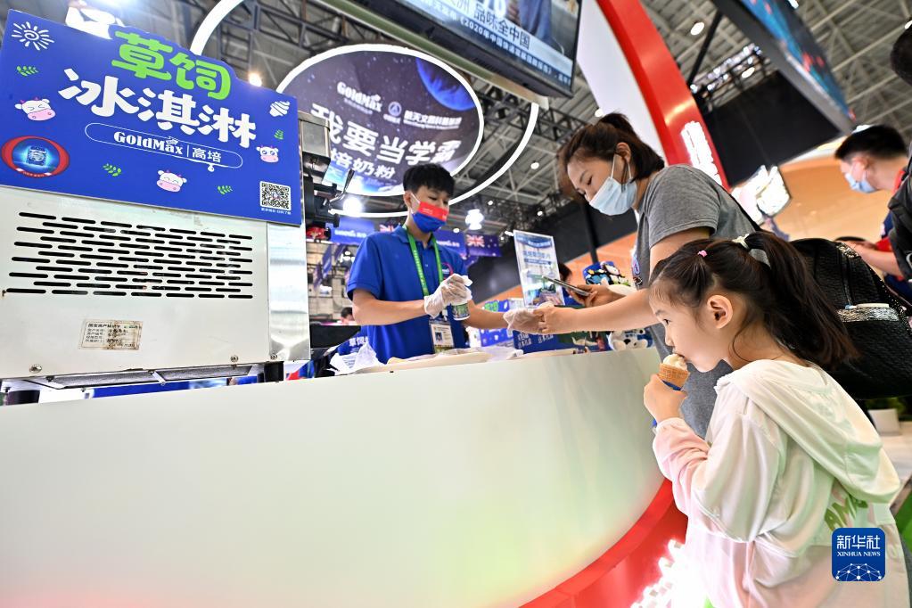 4月12日,小朋友在消博會(huì )一家奶粉展臺品嘗冰淇淋。