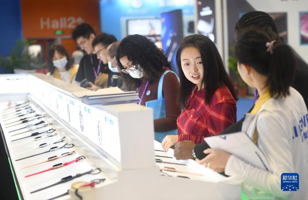 4月12日,參觀(guān)者在展會(huì )上參觀(guān)選購智能手表。