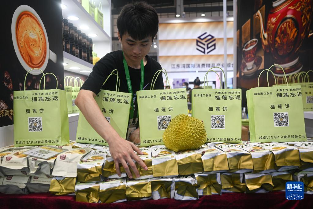這是4月11日在消博會(huì )上拍攝的越南榴蓮餅。