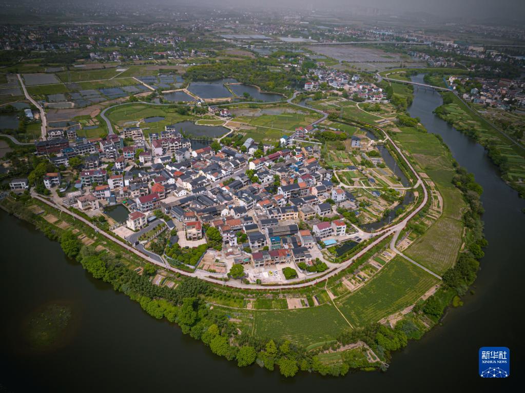 這是4月12日拍攝的諸暨市暨南街道沿江新村景色(無(wú)人機照片)。