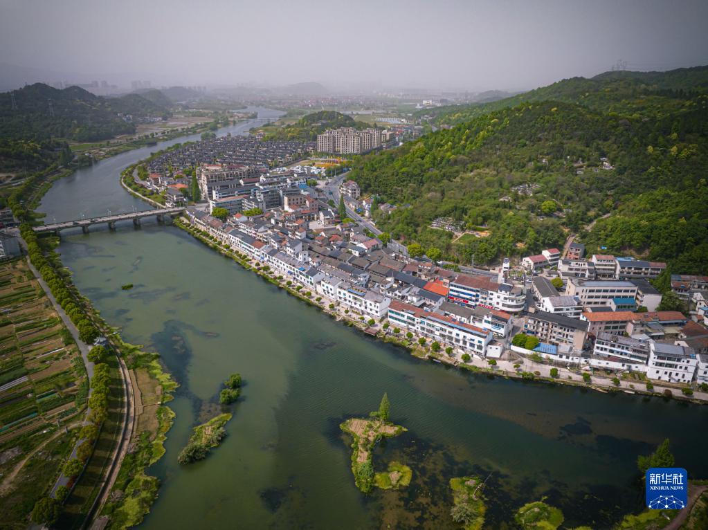 這是4月12日拍攝的諸暨市暨南街道街亭村開(kāi)化江兩岸景色(無(wú)人機照片)。