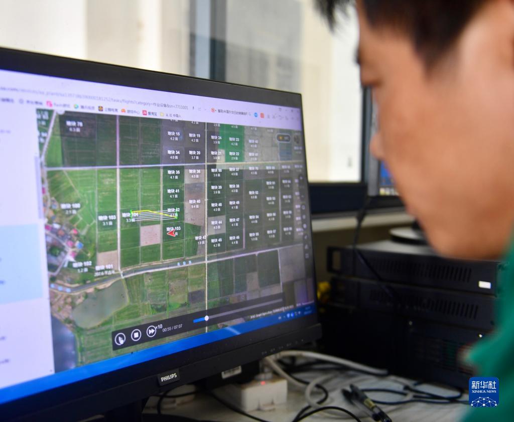 3月7日,黃從明在電腦上監測團隊的無(wú)人機作業(yè)情況。