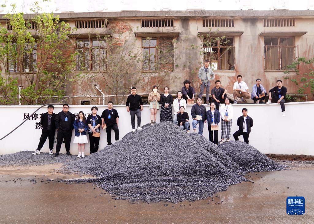 4月12日,程鑠欽(左六)和創(chuàng )業(yè)團隊成員在廢棄礦坑邊的辦公樓前合影。