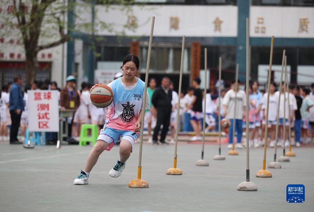 4月13日,在貴州省丹寨縣第三中學(xué),考生參加籃球測試。