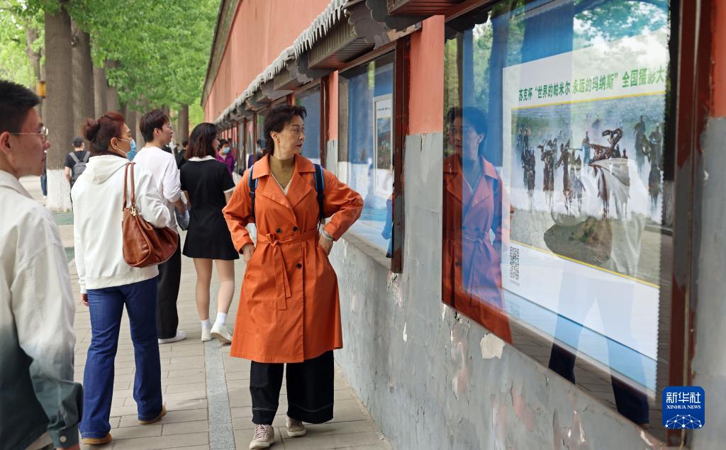 4月13日,觀(guān)眾在北京北海公園觀(guān)看蘇克杯“世界的帕米爾 永遠的瑪納斯”全國攝影大展。