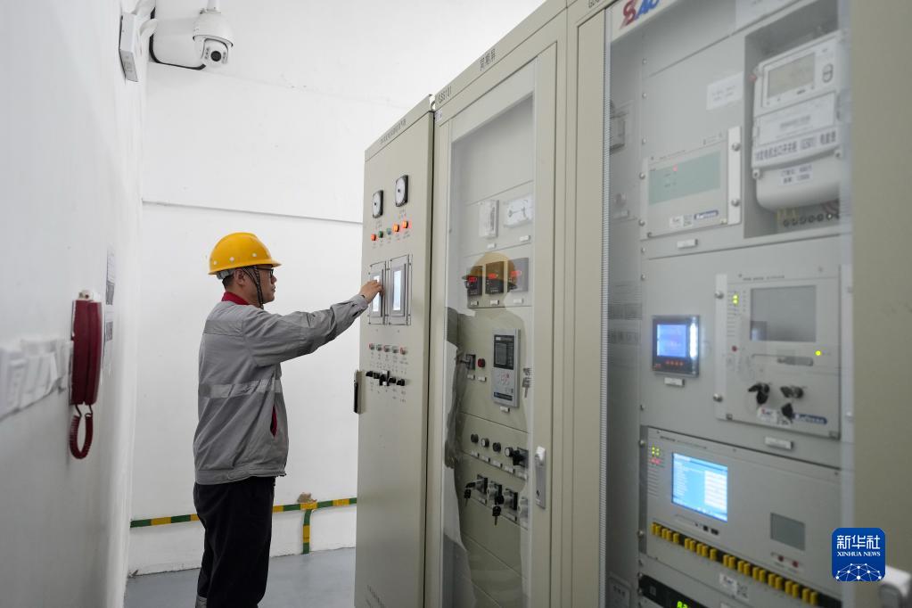 4月13日,工作人員在唐山冀東啟新水泥有限責任公司水泥窯協(xié)同處置綜合固廢及余熱發(fā)電循環(huán)產(chǎn)業(yè)項目區內查看發(fā)電機功率因數。