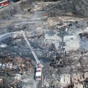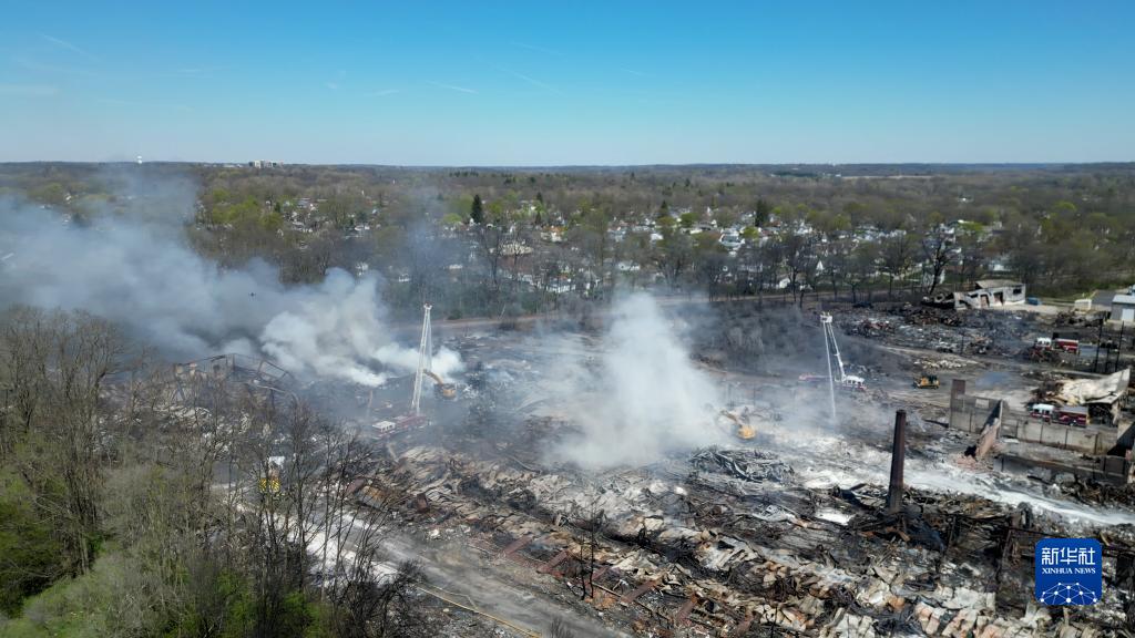 這是4月13日拍攝的美國印第安納州發(fā)生火災的回收廠(chǎng)(無(wú)人機拍攝)。