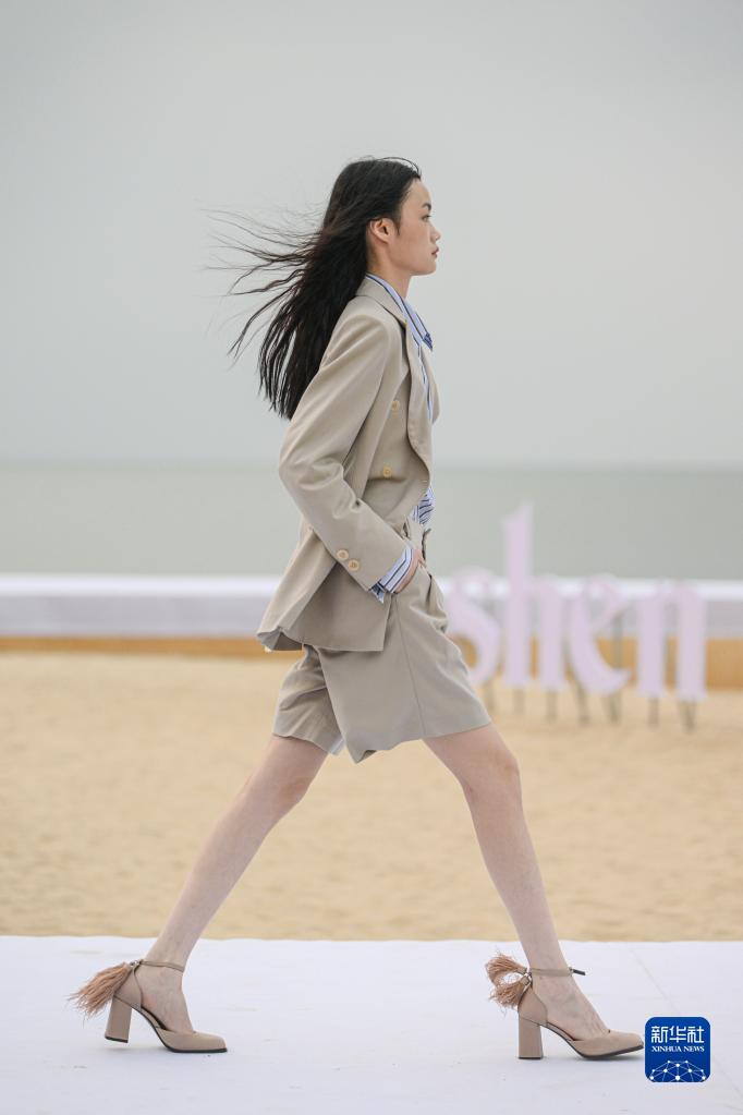 4月13日,模特在消博會(huì )時(shí)裝周海邊秀場(chǎng)展示時(shí)裝作品。