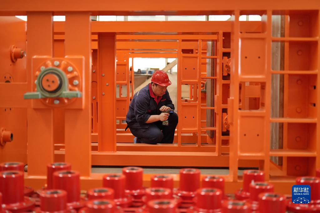 4月14日,工人在唐山賀祥智能科技股份有限公司生產(chǎn)車(chē)間作業(yè)。
