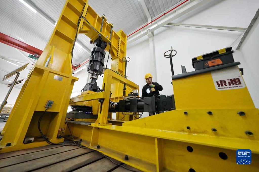 4月13日,工人在唐山龍泉機械有限公司企業(yè)實(shí)驗室內檢查設備運行情況。