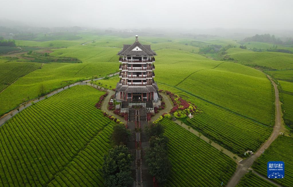2021年4月12日拍攝的貴州省湄潭縣的“萬(wàn)畝茶?!憋L(fēng)光(無(wú)人機照片)。