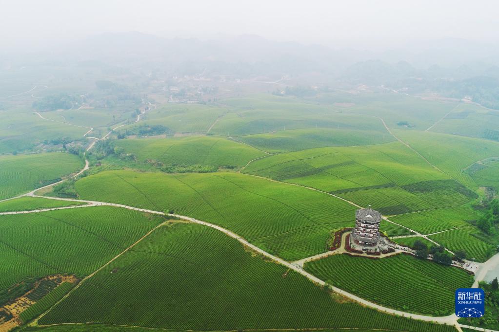 這是貴州省湄潭縣的“萬(wàn)畝茶?!憋L(fēng)光(無(wú)人機照片,2021年4月12日攝)。