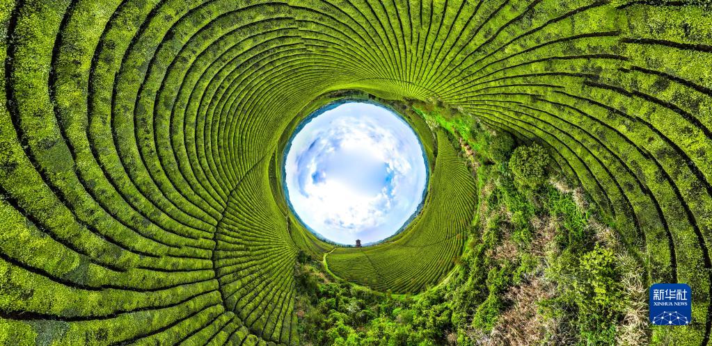 4月4日拍攝的遵義市湄潭縣永興鎮“萬(wàn)畝茶?!保o(wú)人機全景拼接照片)。