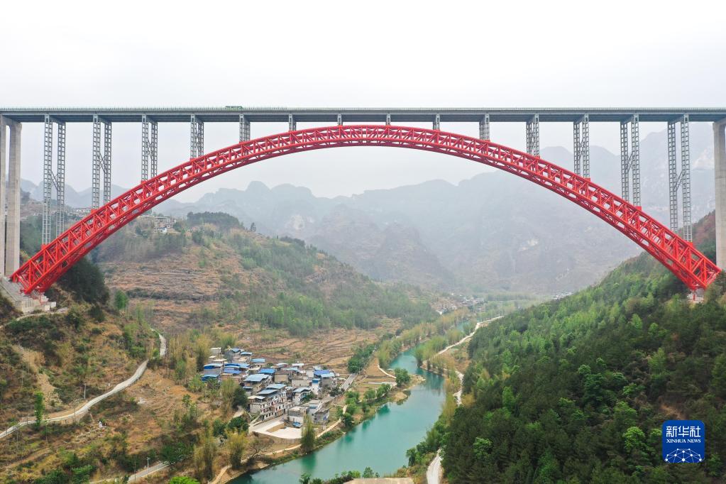 4月14日拍攝的貴州平羅高速大小井特大橋(無(wú)人機照片)。