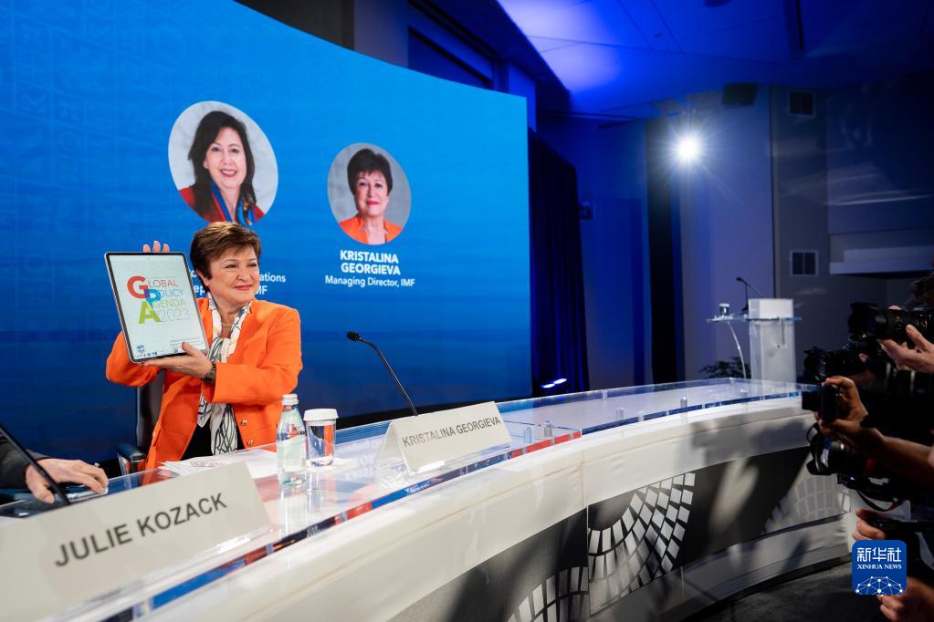 4月13日,在美國華盛頓,國際貨幣基金組織(IMF)總裁格奧爾基耶娃出席記者會(huì )。
