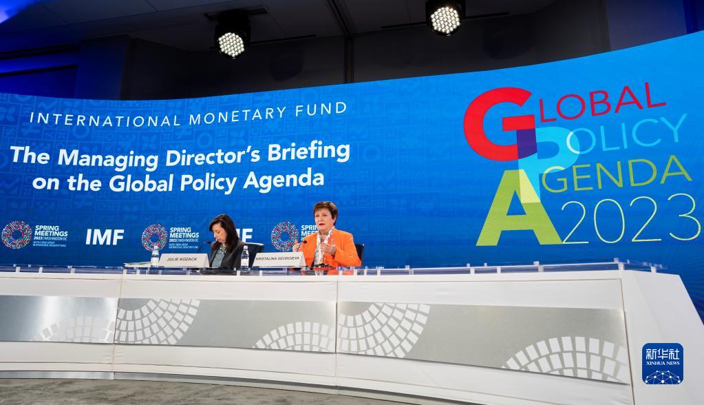 4月13日,在美國華盛頓,國際貨幣基金組織(IMF)總裁格奧爾基耶娃(右)出席記者會(huì )。