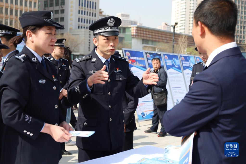 4月15日,在甘肅省蘭州市舉行的全民國家安全教育日宣傳活動(dòng)現場(chǎng),公安民警為市民講解國家安全知識。