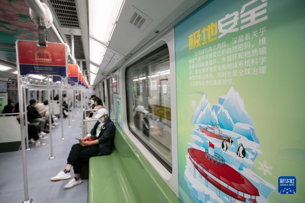 這是4月15日拍攝的上海地鐵“國安號”主題列車(chē)車(chē)廂內景,車(chē)廂內外以主題海報等形式宣傳國家安全知識。