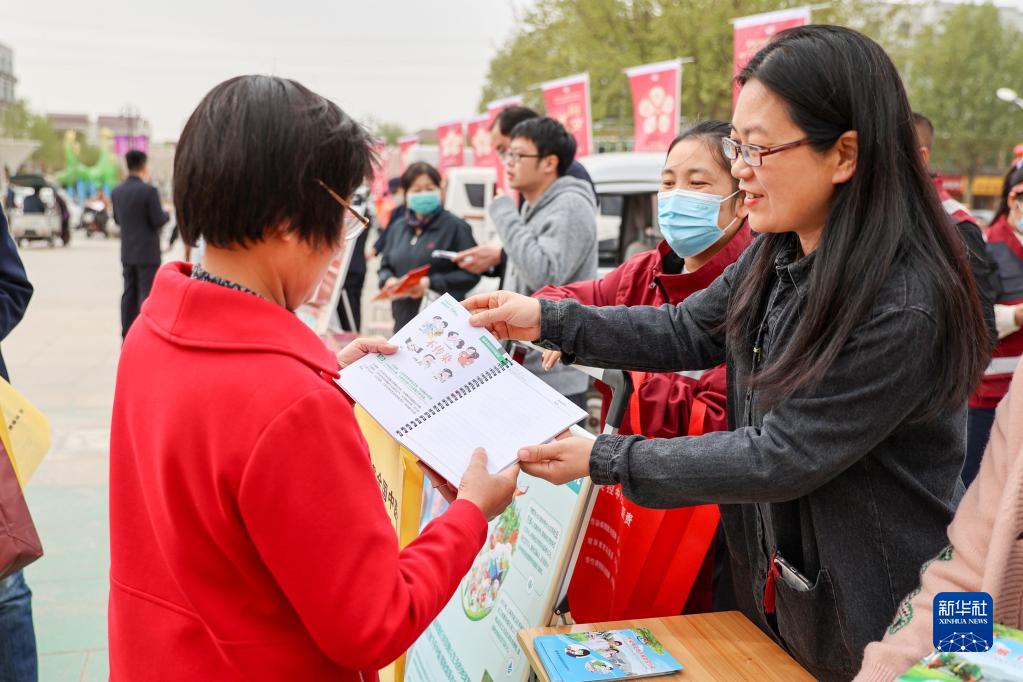 4月15日,在河北省石家莊晉州市新世紀廣場(chǎng),工作人員為市民講解國家安全知識。