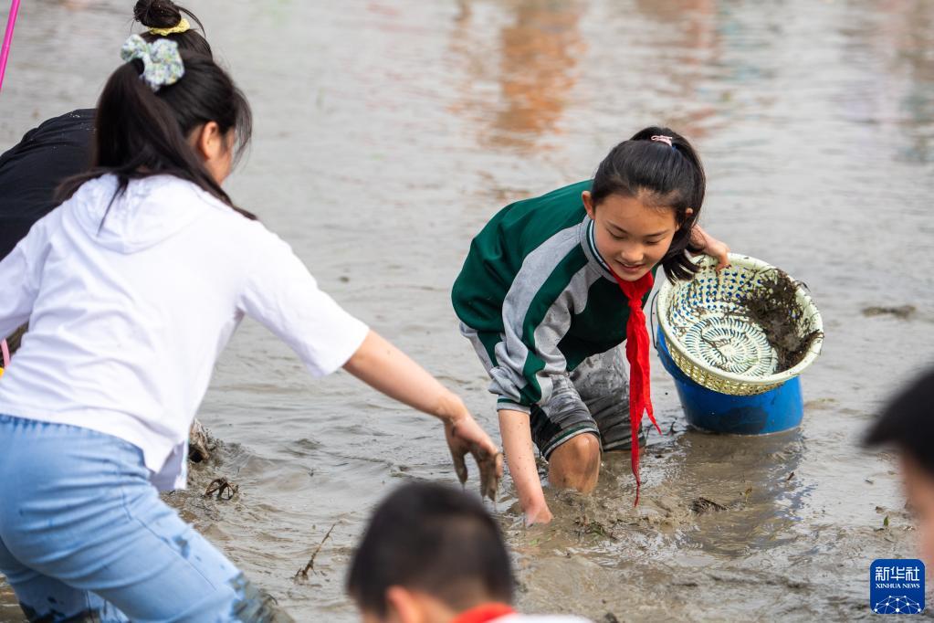 當日,在湖南省長(cháng)沙市寧鄉市灰湯鎮花果山村舉行的農耕民俗文化節學(xué)生研學(xué)活動(dòng)中,孩子們通過(guò)開(kāi)展稻田插秧、捉泥鰍等“農趣” 比賽,走進(jìn)田間地頭,感受勞動(dòng)帶來(lái)的艱辛與快樂(lè )。