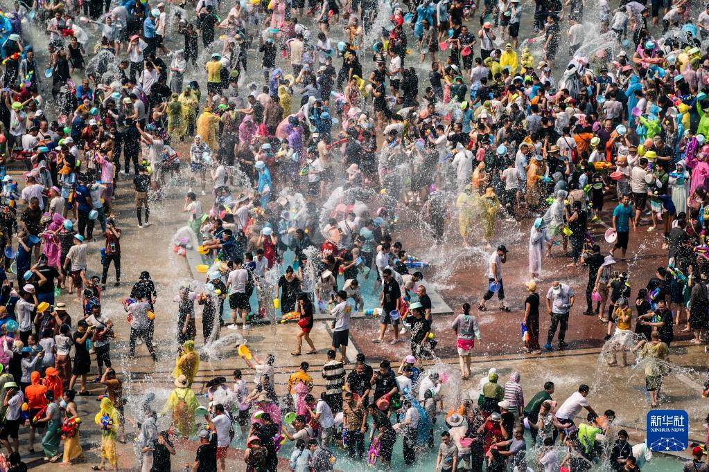 4月15日,人們在云南省西雙版納傣族自治州景洪市潑水廣場(chǎng)潑水狂歡。