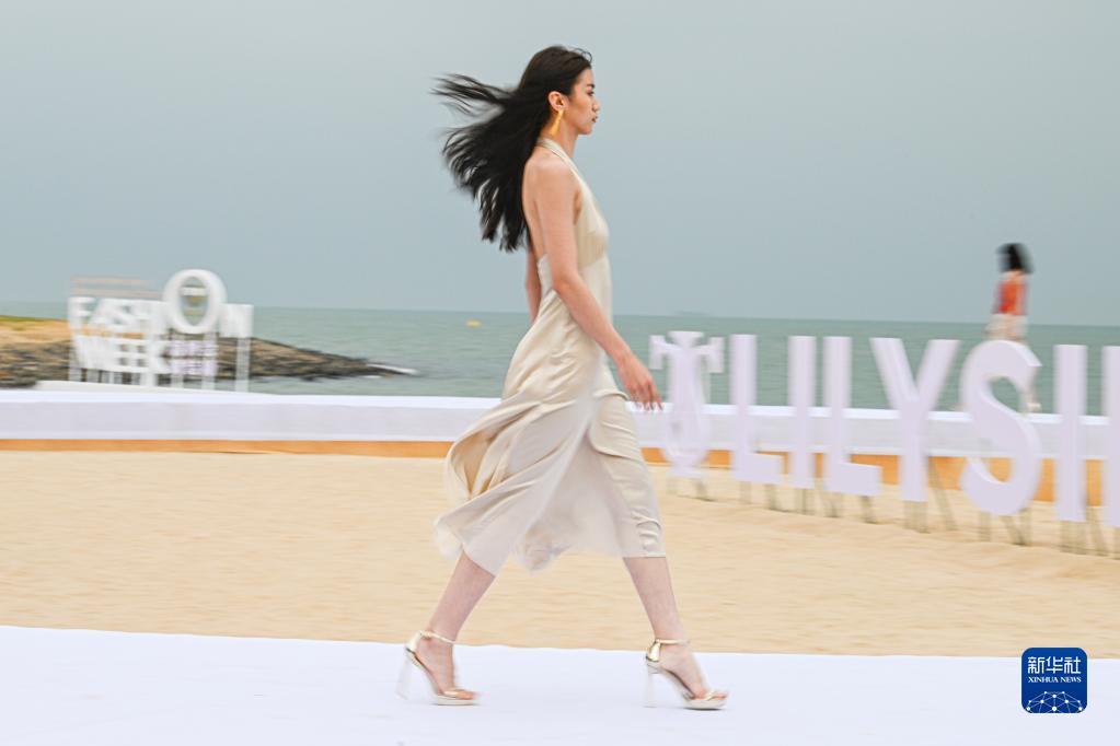 4月12日,模特在消博會(huì )時(shí)裝周海邊秀場(chǎng)展示時(shí)裝作品。
