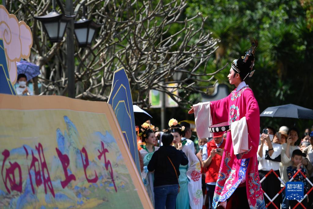 4月15日,在福州西湖上巳節啟動(dòng)儀式現場(chǎng),福建閩劇院的演員在表演閩劇片段。