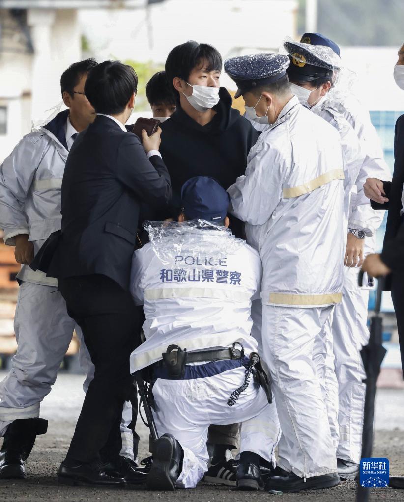 4月15日,在日本和歌山縣和歌山市雜賀崎漁港,嫌疑人被警方控制。