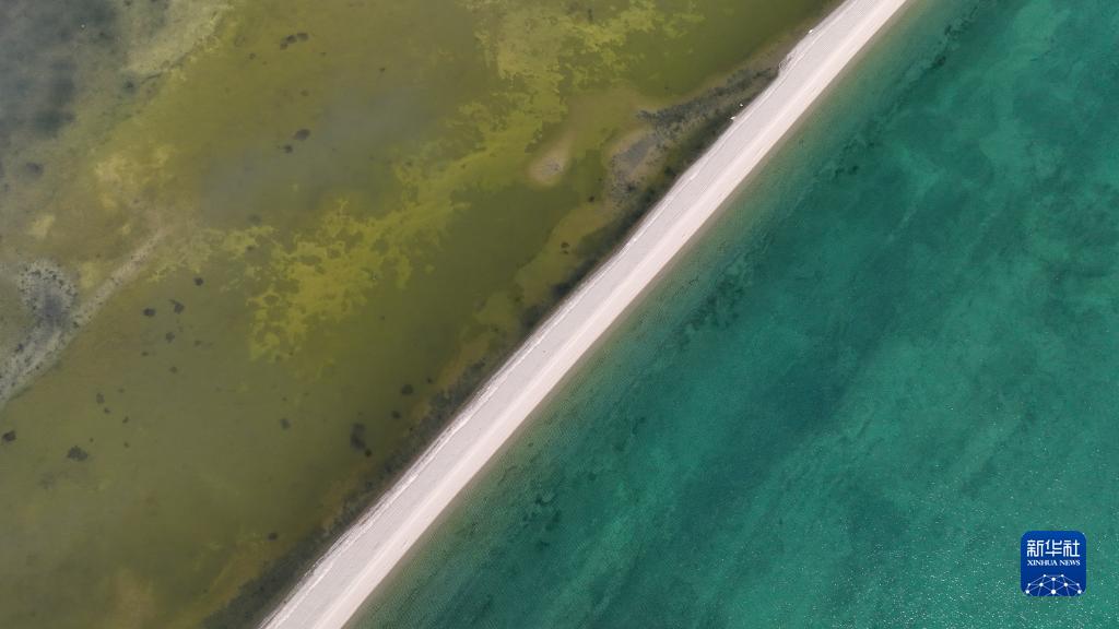 這是4月15日拍攝的青海湖一角(無(wú)人機照片)。