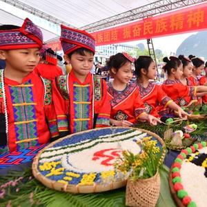 當日,廣西河池市大化瑤族自治縣舉辦“美味三月三”美食大賽,當地各族群眾以糯米、七百弄雞、山羊、河魚(yú)等當地特色食材制作的數百道美食參加評比。